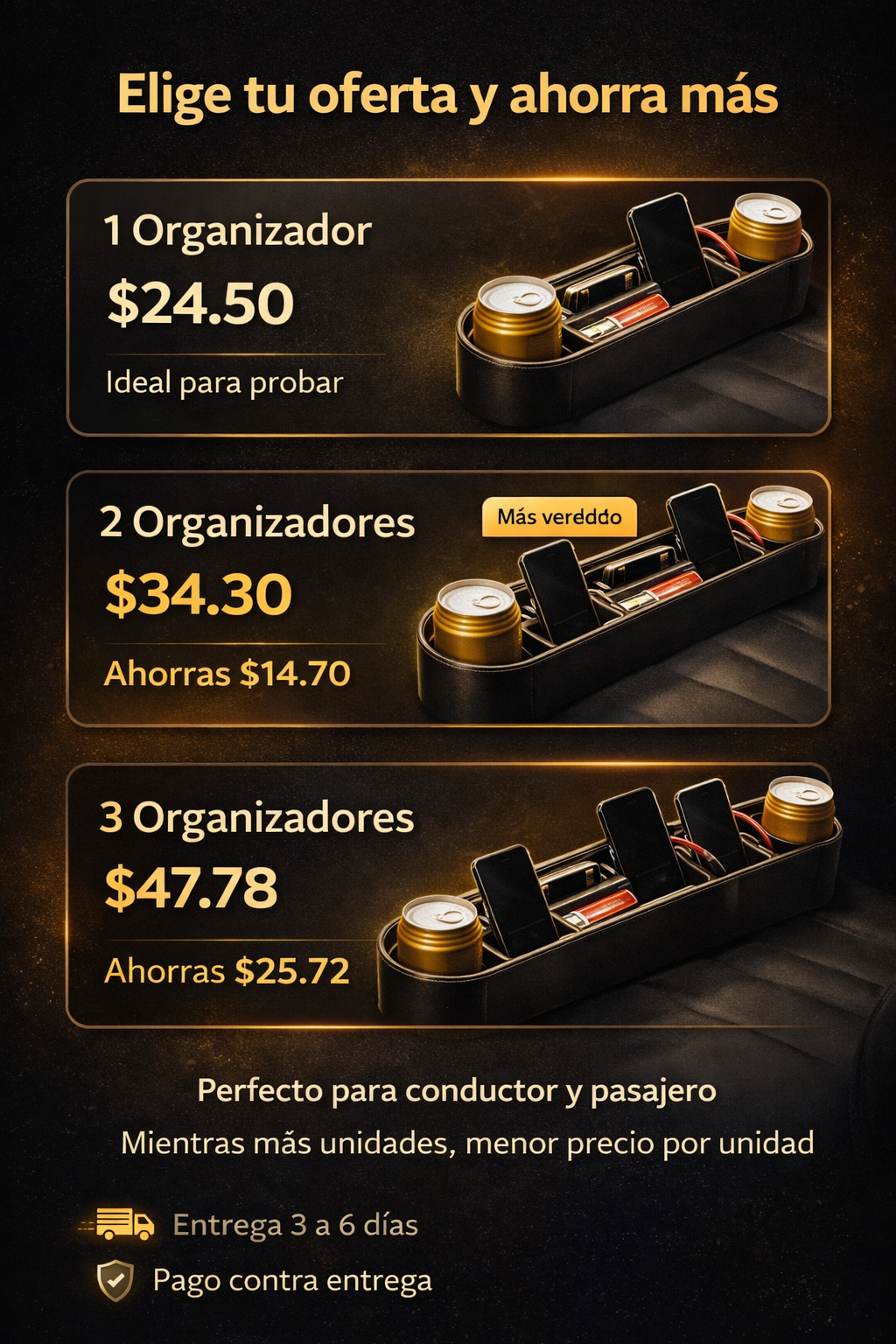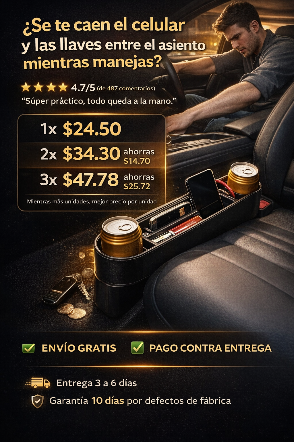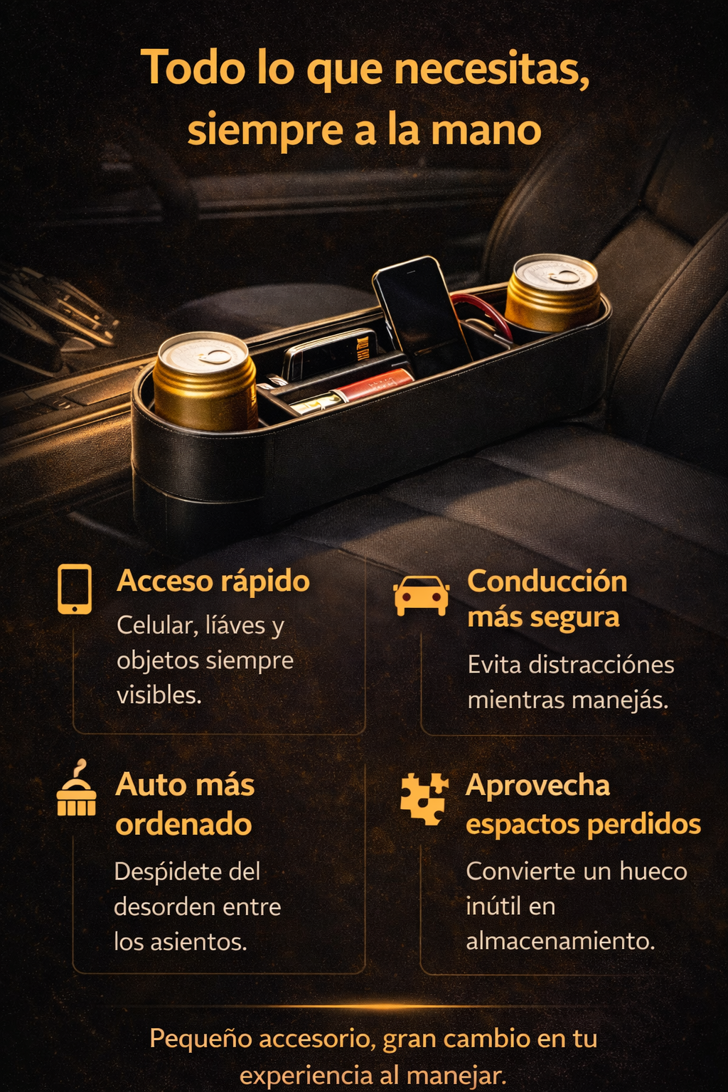 Organizador Para Carro X 1 De Asiento, Lado Conductor o acompañante.