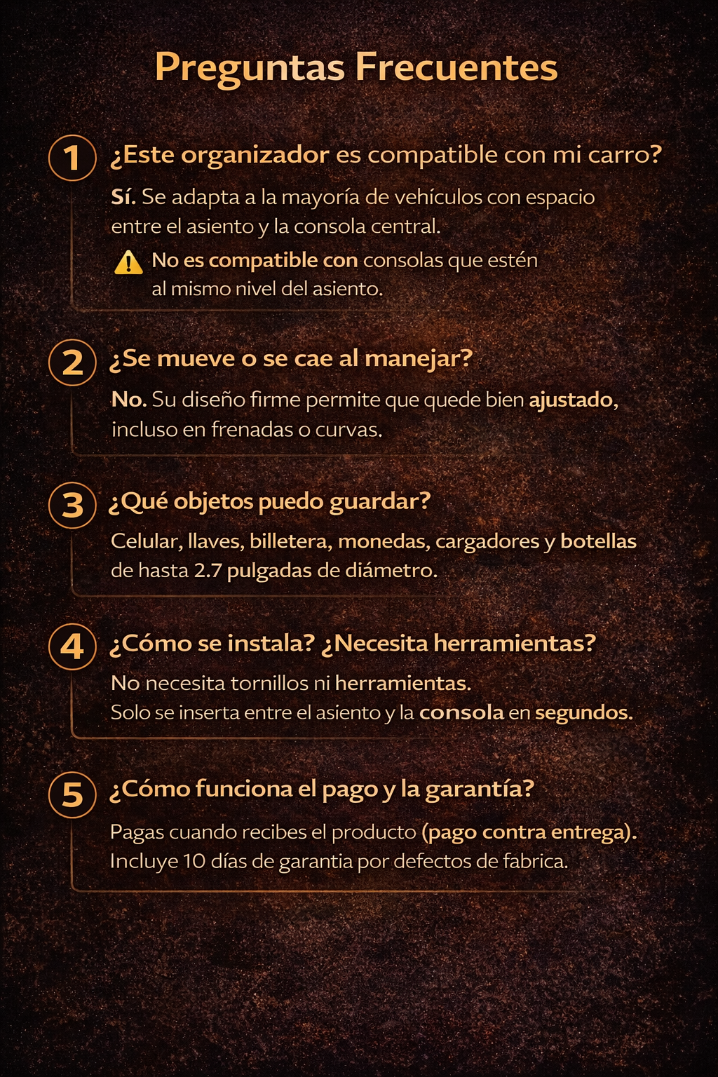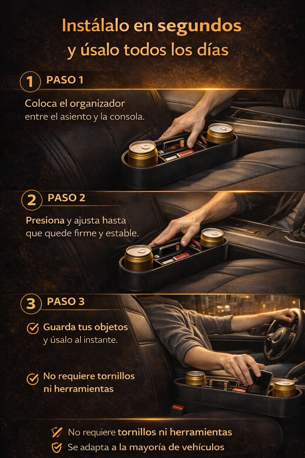 • Multifunción: ¿Estás cansado de que tu teléfono, llaves, tarjetas, cargador o monedas siempre se caigan entre el espacio de tu asiento? El organizador de espacio para asiento de automóvil amplía el espacio del automóvil, ideal para mantener tus necesidades de bolsillo organizadas para un viaje agradable.